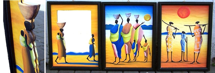 Bilder und Spiegel aus Holz im Reliefstil geschnitzt und bemalt
