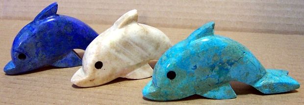 Delfine aus Stein, Länge 10cm, gefärbter Marmor